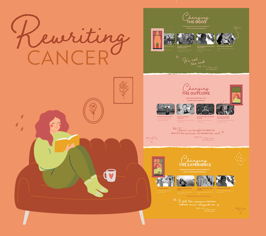 This was for the second series of Rewriting cancer, a campaign that wanted to show the other side of cancer, people living their lives still and enjoying every moment. For the second series I wanted to make it cosy and warm using organic illustrations and colorful palette it bring the audience a sense of warmth and joy.